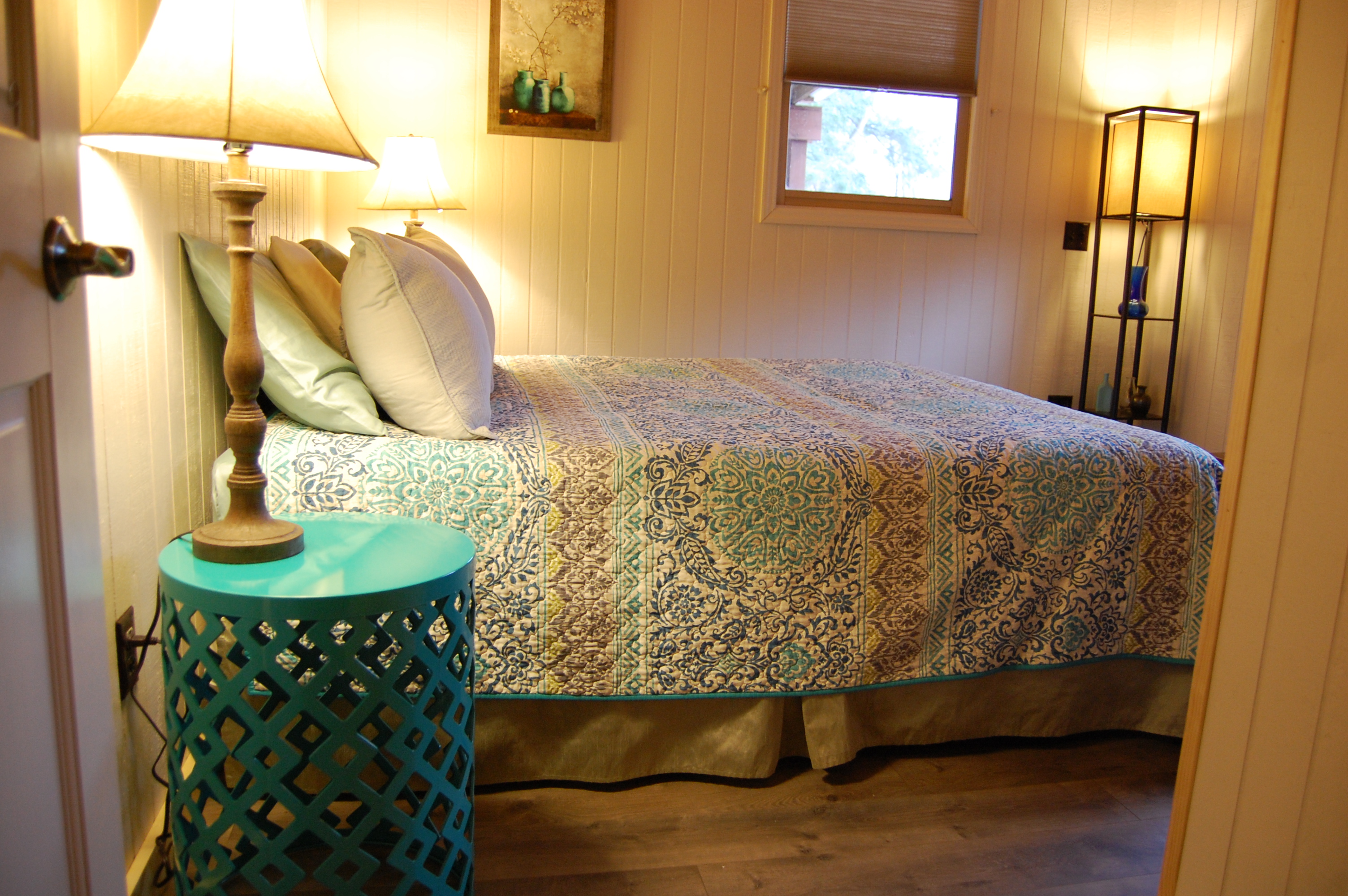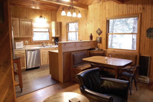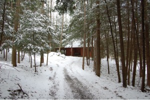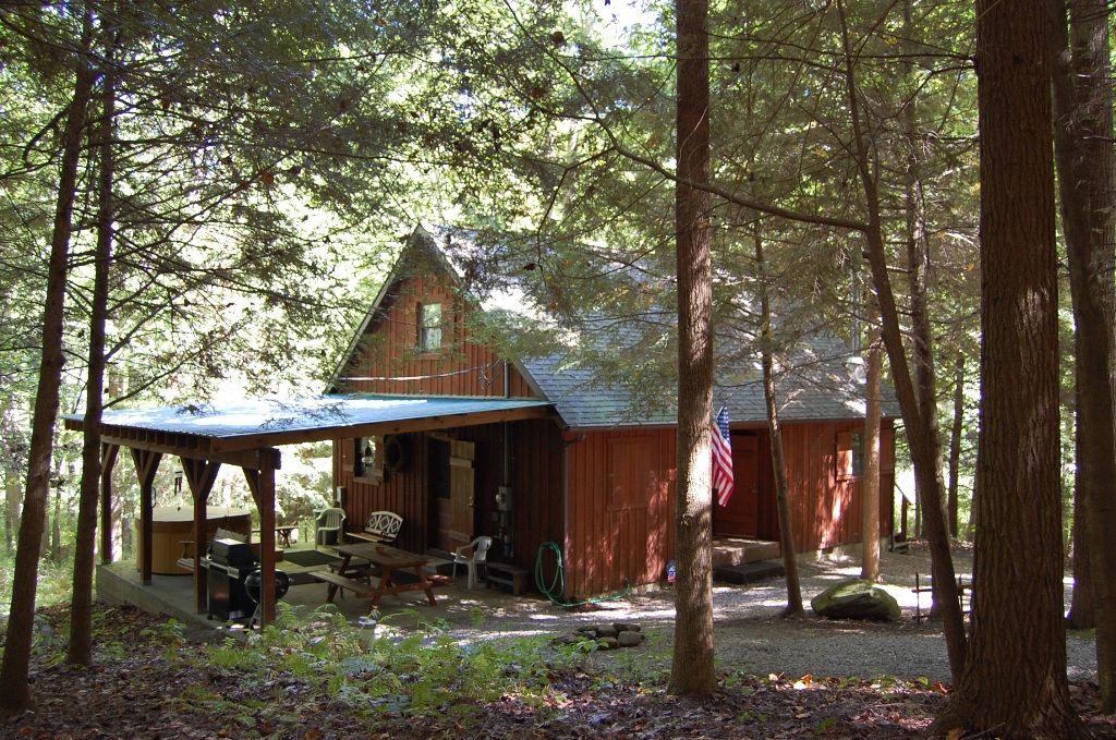 Creeksong ... This cottage has ultimate seclusion. Located just over a mile from the Harvest Moon property, the Creeksong sits on 10 acres of old growth forest with cliffs and rock outcroppings. Two rambling creeks converge below the cottage. Children under 6 are not permitted due to the rugged terrain around the cabin. Sleeps 6 w/1100 sqft.