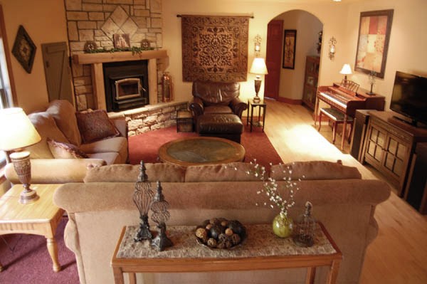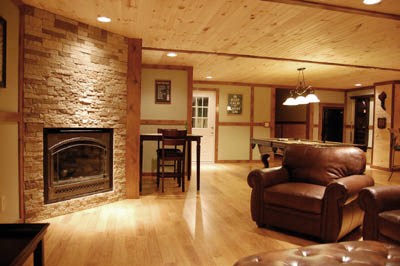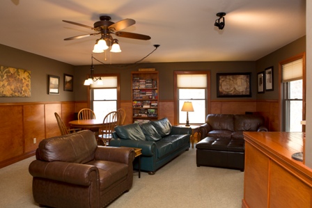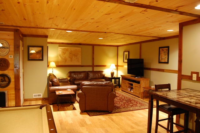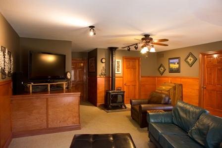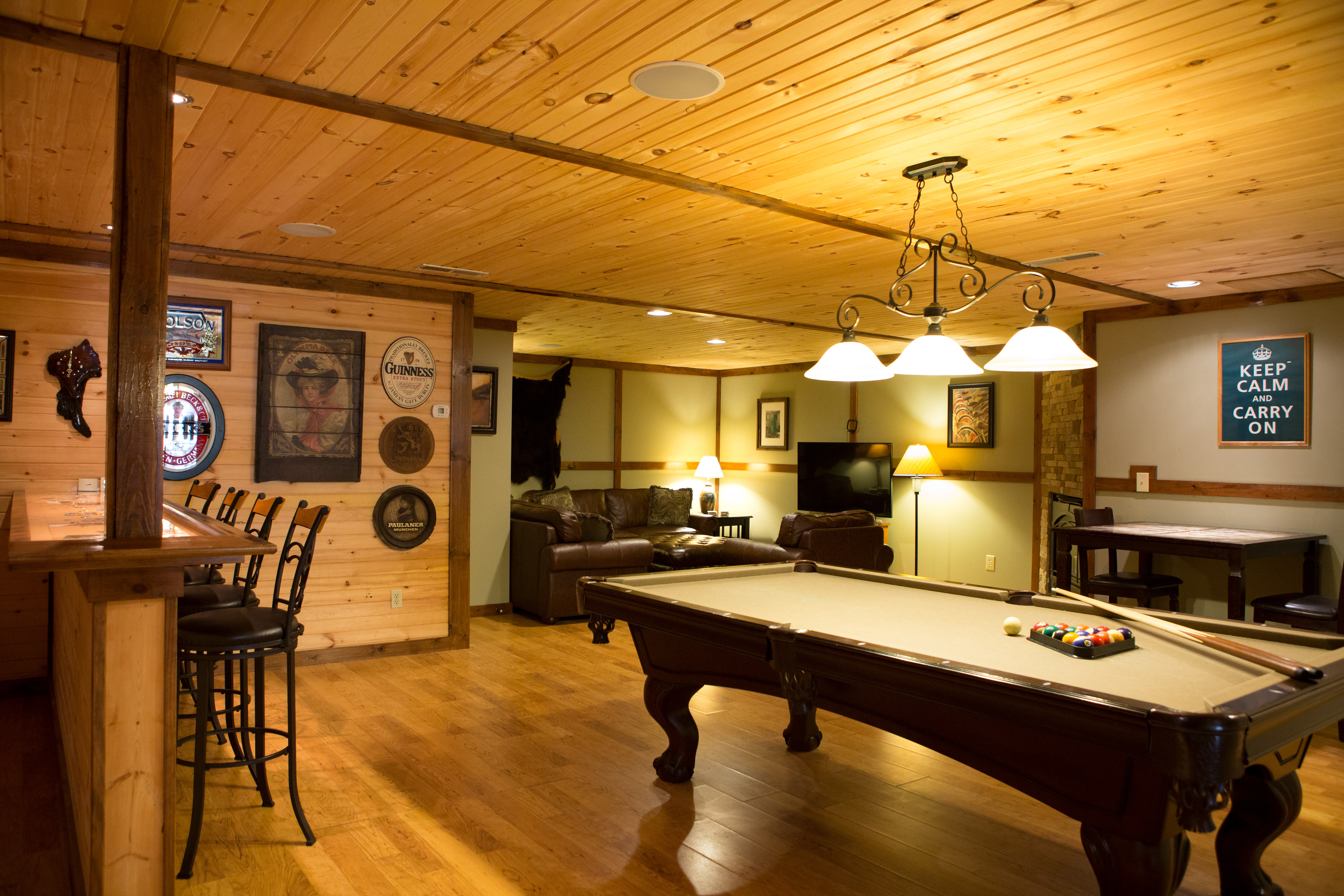 room, a family room, 5 bedrooms, and large laundry room. The Pub is complete with cozy seating, a gas log