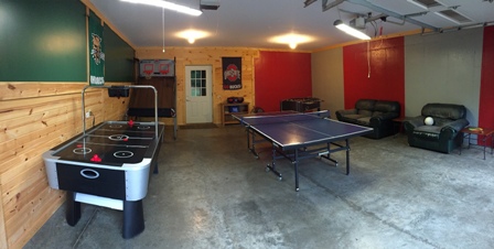 fireplace, a billiards table, and a 10' bar. The game room is perfect for